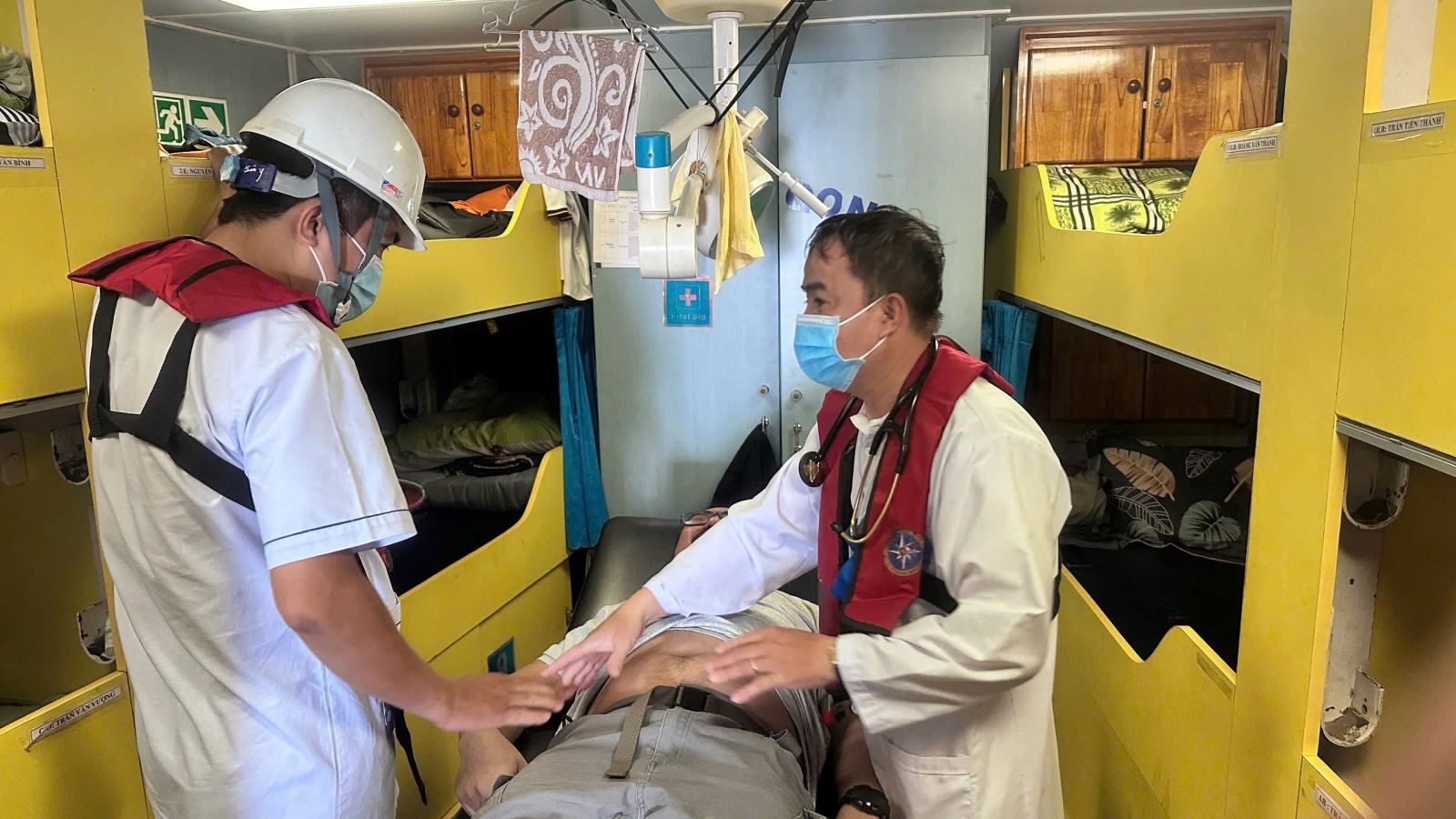 Trong suốt hành trình đưa bệnh nhân vào bờ, đội ngũ y tế đi cùng đã duy trì các biện pháp sơ cứu, theo dõi chặt chẽ tình trạng của bệnh nhân.