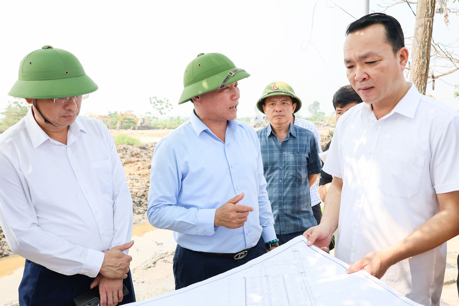 Phó Chủ tịch UBND tỉnh Hoàng Phú Hiền kiểm tra hiện trường tại khu tái định cư trên địa bàn phường Hoàng Mai