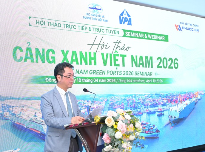 Sáng ngày 10/4/2026, tại Cảng Phước An (tỉnh Đồng Nai), Cục Hàng hải và Đường thủy Việt Nam phối hợp với Hiệp hội Cảng biển Việt Nam tổ chức Hội thảo “Cảng xanh Việt Nam 2026”, thu hút sự tham dự của đông đảo đại biểu đến từ các cơ quan quản lý nhà nước, hiệp hội, doanh nghiệp cảng biển, logistics, các tổ chức tài chính và chuyên gia trong lĩnh vực hàng hải, môi trường.
