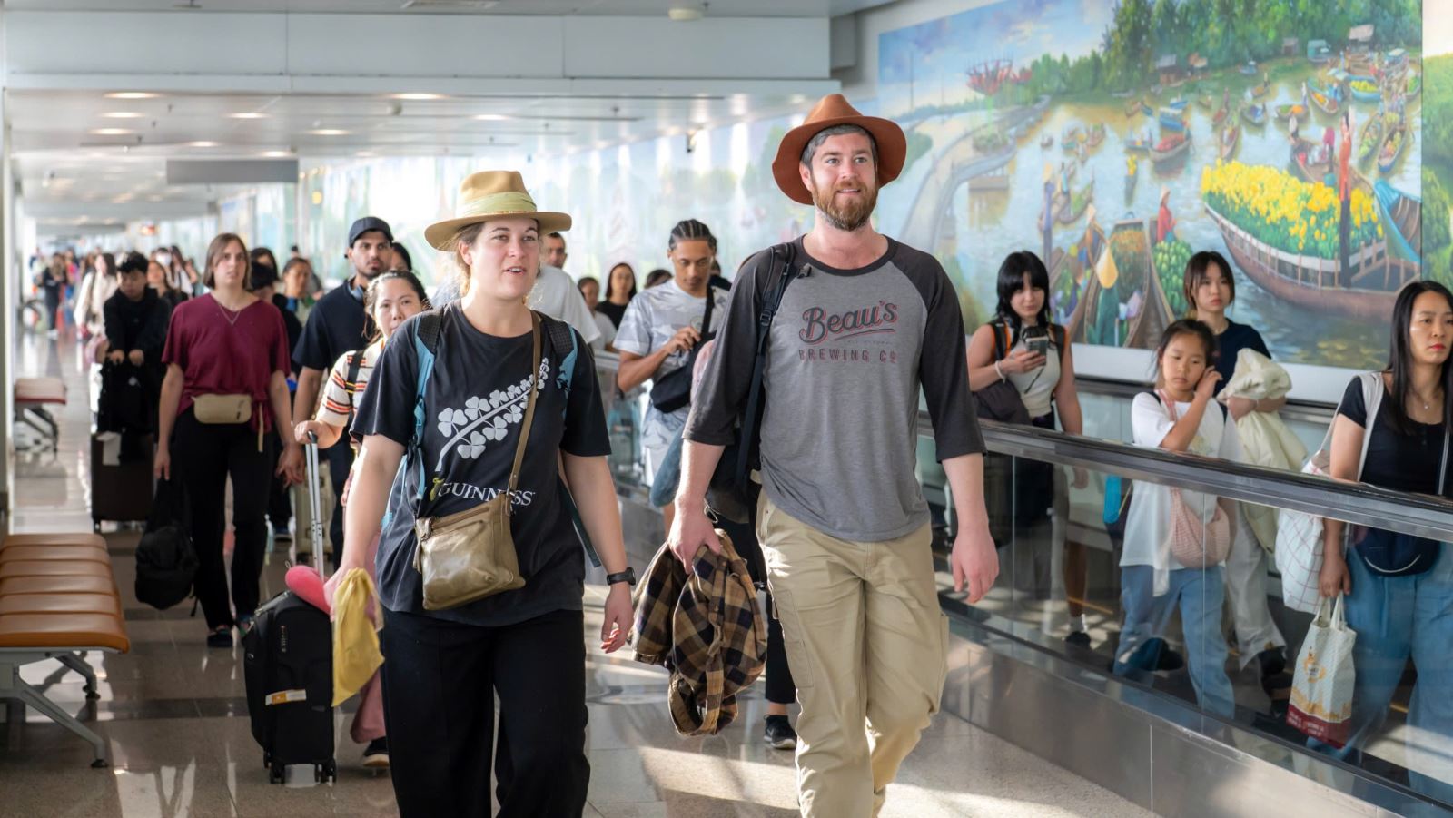 Khách quốc tế qua Cảng HKQT Nội Bài.