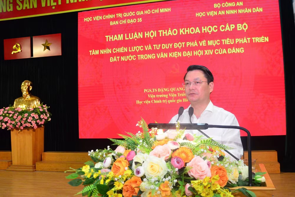 Phát biểu tại hội thảo, Trung tướng, Phó Giáo sư, Tiến sĩ Trịnh Ngọc Quyên, Bí thư Đảng ủy, Giám đốc Học viện An ninh nhân dân nêu rõ: Đại hội Đại biểu toàn quốc lần thứ XIV của Đảng là sự kiện có ý nghĩa đặc biệt quan trọng, định hình phương hướng phát triển đất nước trong kỷ nguyên mới của dân tộc Việt Nam.