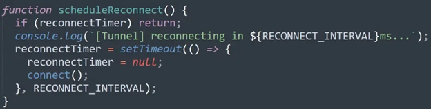 Nếu kênh bị gián đoạn, công cụ này sẽ cố gắng khôi phục đường hầm WebSocket bằng cơ chế kết nối lại, cho phép kẻ tấn công duy trì quyền truy cập liên tục.