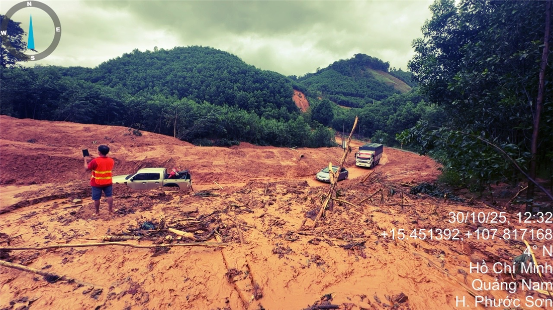 Đường Hồ Chí Minh qua Đà Nẵng, Quảng Ngãi xuất hiện nhiều điểm sạt lở mới, Khu QLĐB III chỉ đạo các đơn vị tổng lực hót dọn, nỗ lực thông tuyến sớm nhất có thể.