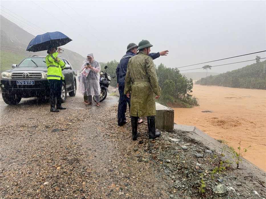 Trong khi đất đá ở taluy dương đã ngấm “no nước”, thời tiết ở Hà Tĩnh lại mưa gió kéo dài, việc lưu thông trên những cung đường đồi núi tiềm ẩn nguy cơ sạt lở.