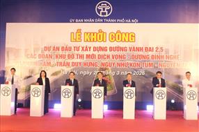 Sáng nay (20/3), UBND thành phố Hà Nội tổ chức lễ khởi công Dự án đầu tư xây dựng đường Vành đai 2,5 các đoạn: Khu đô thị mới Dịch Vọng - Dương Đình Nghệ, Vũ Phạm Hàm - Trần Duy Hưng, Ngụy Như Kon Tum - Nguyễn Trãi.