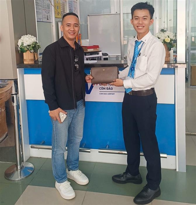 Nhân viên Cảng hàng không Côn Đảo trao trả lại tài sản giá trị cho hành khách(23/04/2025)