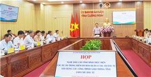 UBND tỉnh Quảng Ngãi vừa tổ chức cuộc họp đôn đốc tiến độ các dự án trọng điểm của tỉnh. Tại cuộc họp, Phó Chủ tịch UBND tỉnh Nguyễn Công Hoàng yêu cầu chủ đầu tư, địa phương, Trung tâm Phát triển quỹ đất tỉnh phải bàn cách làm hiệu quả, quyết tâm giải phóng mặt bằng, thúc đẩy tiến độ thi công, giải ngân từng dự án.