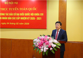 Sáng 4/2, Bộ Nội vụ chủ trì tổ chức Hội nghị trực tuyến toàn quốc tập huấn nghiệp vụ công tác bầu cử đại biểu Quốc hội khóa XVI và đại biểu Hội đồng nhân dân các cấp nhiệm kỳ 2026-2031. Hội nghị được kết nối từ điểm cầu Trung ương tại trụ sở Bộ Nội vụ tới các điểm cầu địa phương trên cả nước.