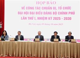 Sáng 09/10, tại Hà Nội, Đảng ủy Chính phủ tổ chức Họp báo thông báo về công tác chuẩn bị, tổ chức Đại hội đại biểu Đảng bộ Chính phủ lần thứ I, nhiệm kỳ 2025-2030.
