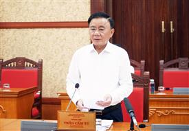 Sáng 24/10, tại Trụ sở Trung ương Đảng, đồng chí Trần Cẩm Tú, Ủy viên Bộ Chính trị, Thường trực Ban Bí thư, Trưởng Tiểu ban Tổ chức phục vụ Đại hội XIV của Đảng chủ trì Phiên họp thường trực Tiểu ban. Cùng dự có các đồng chí Ủy viên Trung ương Đảng, lãnh đạo các ban, bộ, ngành là thành viên Tiểu ban.