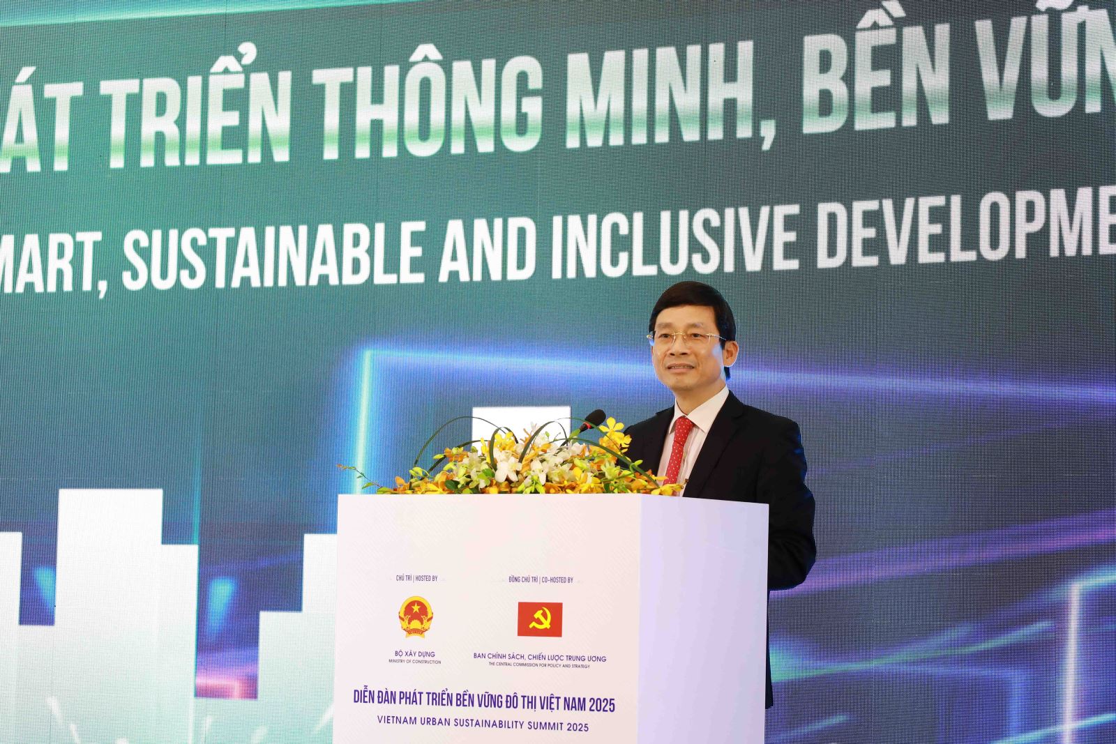 Phát biểu tại Diễn đàn, Phó Trưởng Ban Chính sách chiến lược Trung ương Nguyễn Duy Hưng cho biết ba chủ đề của Diễn đàn Phát triển bền vững đô thị Việt Nam năm nay phản ánh rõ bức tranh toàn diện về phát triển đô thị trong thời kỳ mới - giai đoạn mà đô thị hóa vừa tạo ra thời cơ, vừa đặt ra nhiều thách thức. Ông khẳng định phát triển đô thị bền vững không chỉ là vấn đề kinh tế mà còn là nhiệm vụ chính trị, xã hội và an sinh lâu dài. Đô thị không chỉ mở rộng không gian sống mà phải hướng tới nâng cao chất lượng cuộc sống, bảo vệ môi trường, đảm bảo sự hài hòa giữa con người và môi trường.