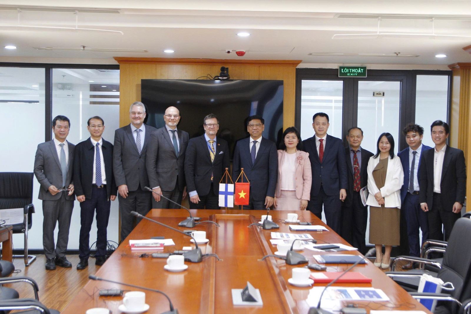 Thứ trưởng Nguyễn Xuân Sang và Đại sứ Pekka Voutilainen chụp ảnh lưu niệm cùng các đại biểu tại buổi làm việc