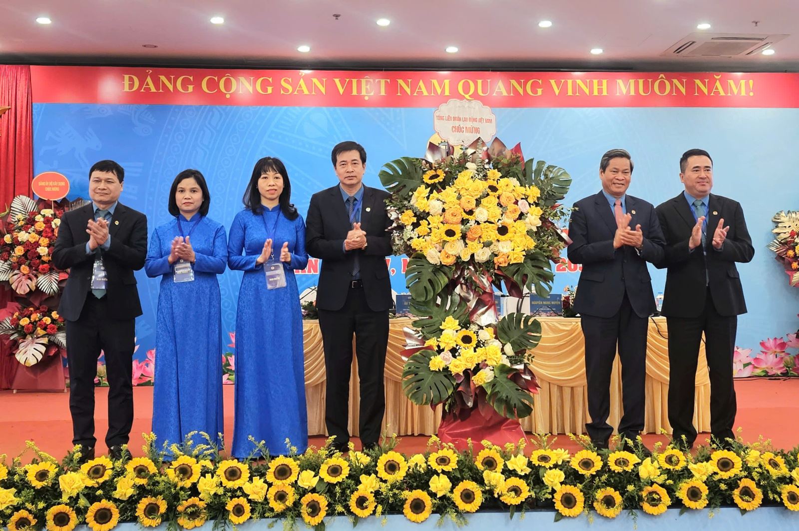 Phó Chủ tịch Tổng Liên đoàn Lao động Việt Nam Huỳnh Thanh Xuân tặng hoa chúc mừng Đại hội.
