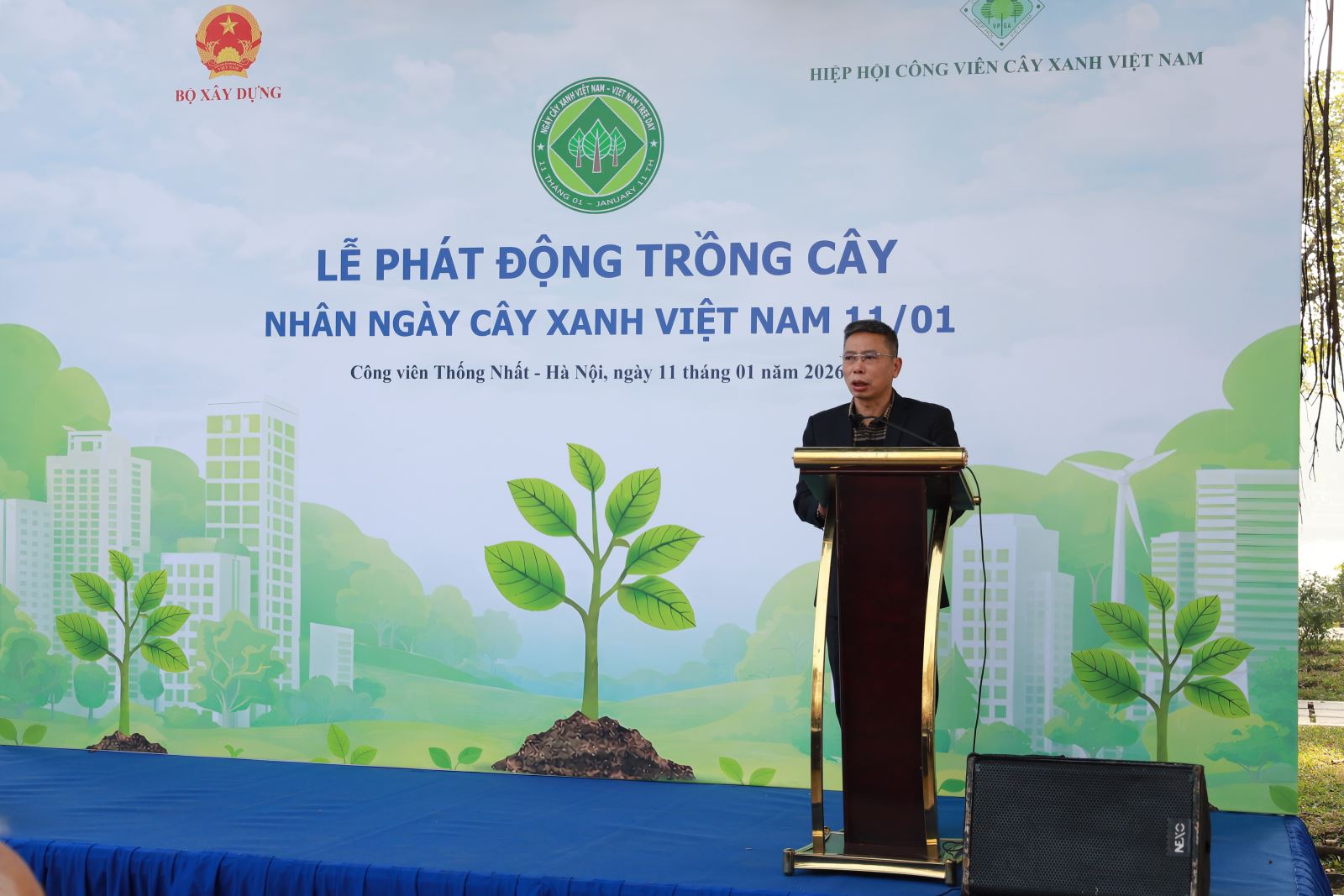 Phát biểu tại Lễ phát động, được sự ủy quyền của lãnh đạo Bộ Xây dựng, Cục trưởng Cục Kết cấu hạ tầng xây dựng Tạ Quang Vinh cho biết, ngày 9/10/2025, Chính phủ đã ban hành Nghị định số 258/2025/NĐ-CP về quản lý công viên, cây xanh, mặt nước, trong đó tại khoản 4 Điều 10 chính thức quy định lấy ngày 11/1 hằng năm là “Ngày Cây xanh Việt Nam”. Việc xác lập một ngày kỷ niệm mang tầm quốc gia dành riêng cho cây xanh thể hiện rõ quan điểm nhất quán của Đảng, Nhà nước trong việc coi hệ thống cây xanh, công viên và mặt nước là một cấu phần hạ tầng thiết yếu, gắn chặt với chất lượng sống của người dân và năng lực phát triển bền vững của các đô thị Việt Nam.