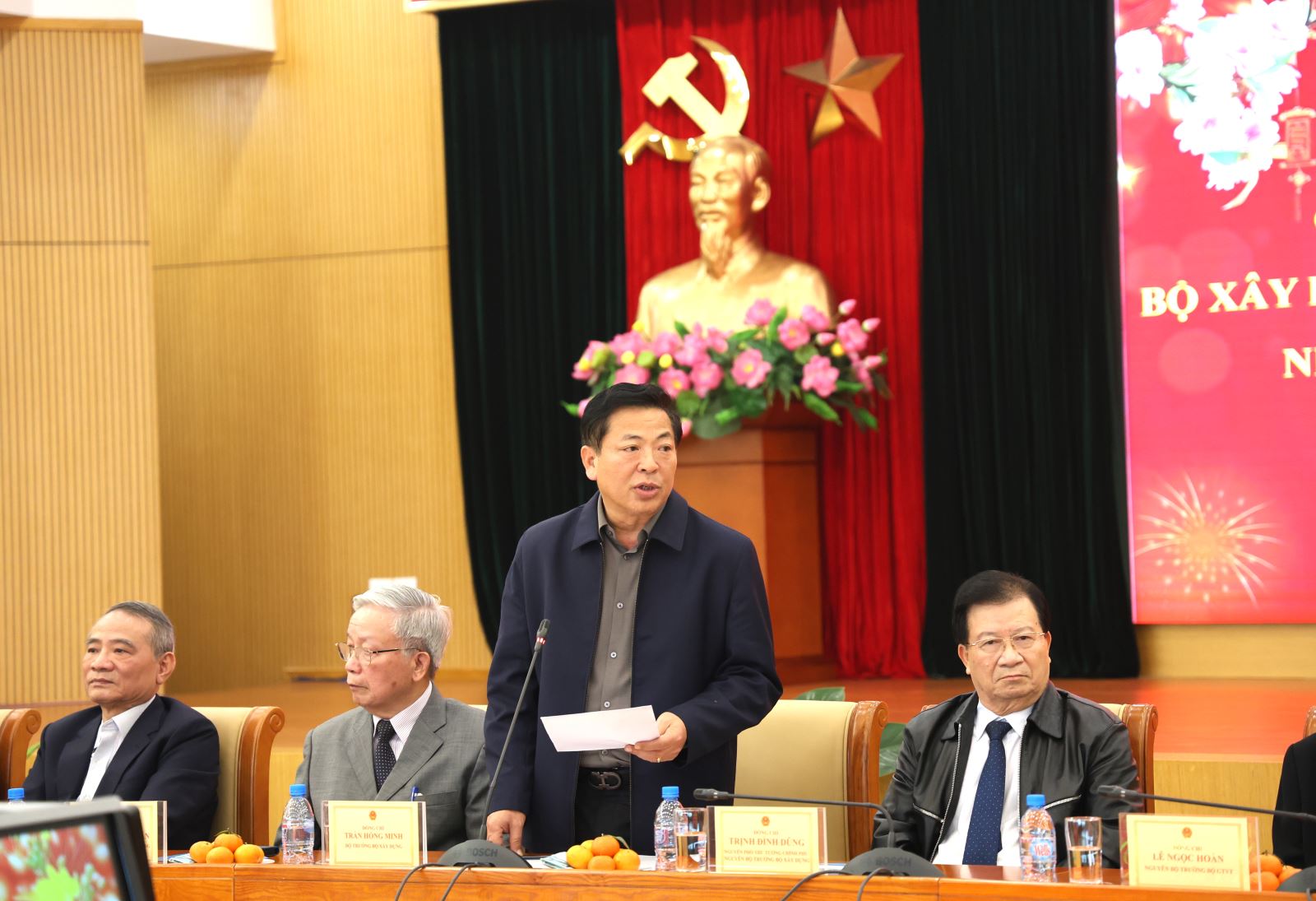Phát biểu tại buổi gặp mặt, đồng chí Trần Hồng Minh, Bí thư Đảng ủy, Bộ trưởng Bộ Xây dựng nhấn mạnh: Buổi gặp mặt là hoạt động truyền thống giàu ý nghĩa hàng năm mỗi dịp Tết đến Xuân về của cả hai Bộ trước khi hợp nhất, nay tiếp tục được phát huy nhằm thể hiện sự trân trọng, tri ân đối với những đóng góp của các thế hệ đi trước.