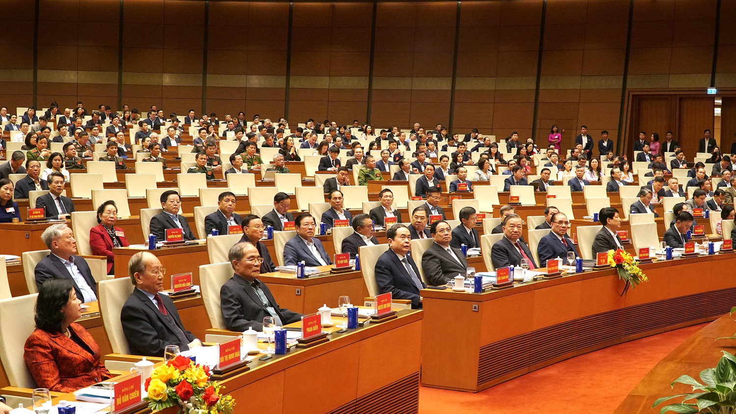 Đại biểu tham dự hội nghị tại điểm cầu chính Hội trường Diên Hồng, Nhà Quốc hội. Ảnh: Hồng Ngọc