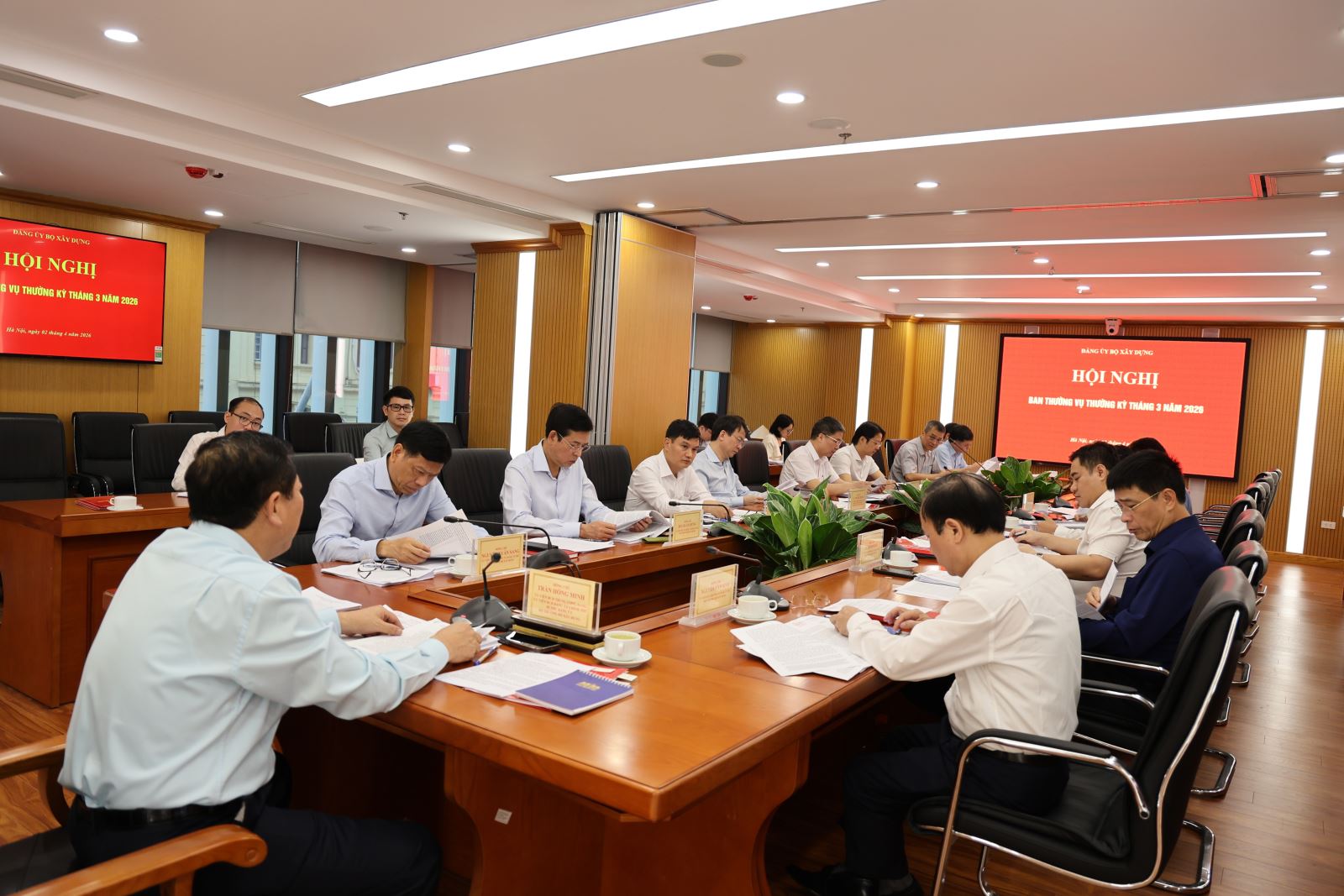 Quang cảnh phiên họp Ban Thường vụ Đảng ủy Bộ Xây dựng thường kỳ tháng 3/2026.