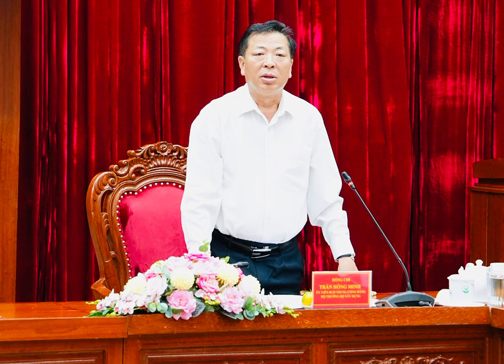 Đồng chí Trần Hồng Minh, Bộ trưởng Bộ Xây dựng phát biểu tại buổi làm việc.