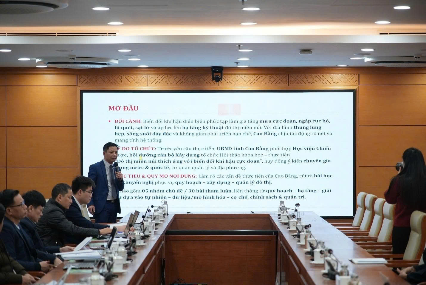 Toàn cảnh Phiên họp trù bị chuẩn bị Hội thảo khoa học “Đô thị miền núi thích ứng với biến đổi khí hậu cực đoan” tại tỉnh Cao Bằng