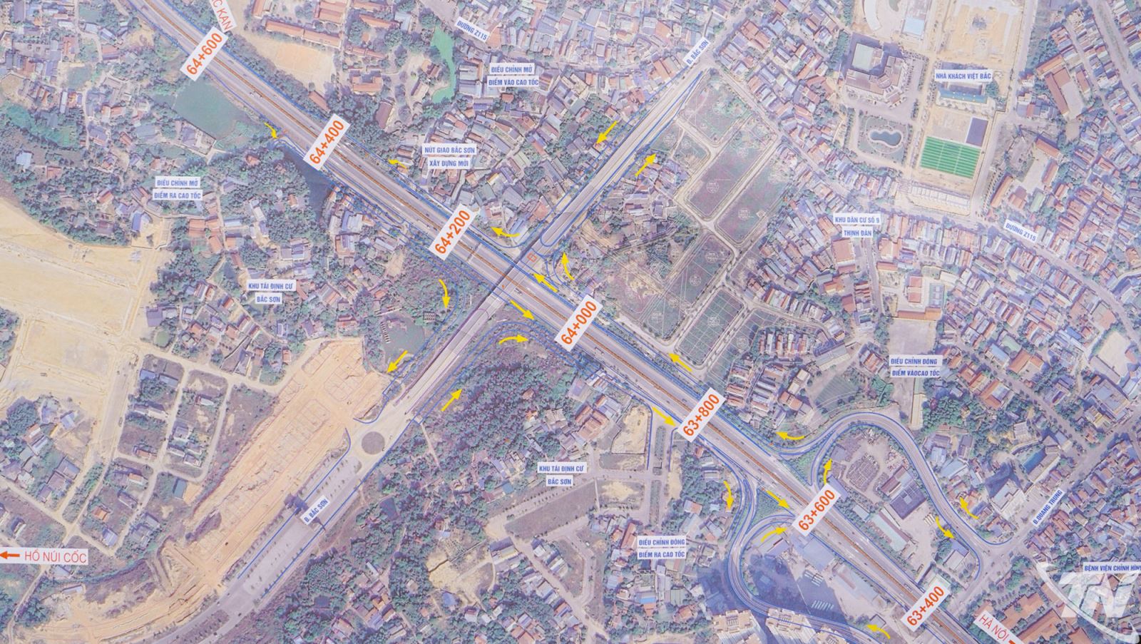 Nút giao liên thông Thịnh Đán - Bắc Sơn, phương án điều chỉnh điểm ra, vào Cao tốc CT.07 để kết nối với đường Bắc Sơn.