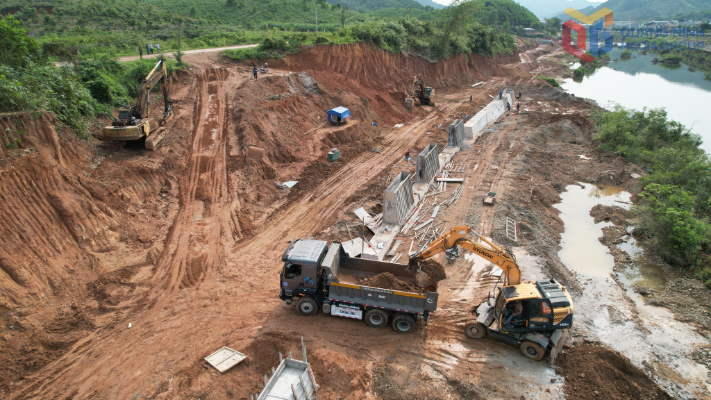 Anh Nguyễn Viết Lan, Chỉ huy trưởng công trường, Công ty TNHH Ánh Dương, cho biết: Đơn vị thực hiện khoảng 9 km đoạn đầu tuyến, hiện đang tập trung 4 mũi thi công kè taluy, đắp đất nền đường. Để đảm bảo tiến độ đặt ra, đơn vị đã chuẩn bị sẵn sàng phương tiện, thiết bị, nhân lực để khi được bàn giao mặt bằng đến đâu sẽ tổ chức thi công ngay đến đó. Trong đó, phấn đấu tập trung hoàn thiện việc kè taluy âm các đoạn qua sông trước mùa mưa lũ năm nay.