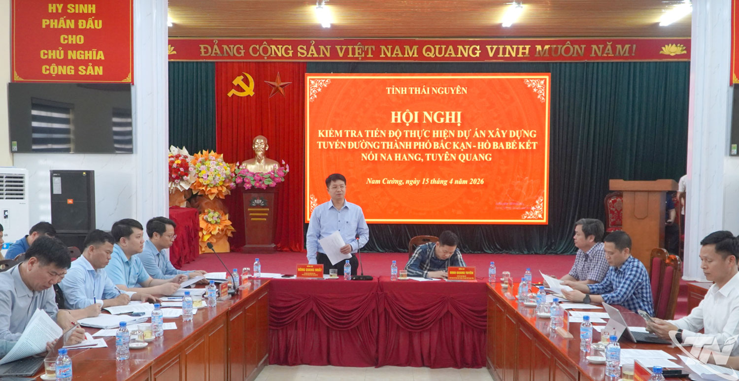 Ngày 15/4, đồng chí Phó Chủ tịch UBND tỉnh Nông Quang Nhất chủ trì cuộc họp kiểm điểm tiến độ Dự án xây dựng tuyến đường thành phố Bắc Kạn - hồ Ba Bể kết nối Na Hang (Tuyên Quang). Dự họp có đồng chí Đinh Quang Tuyên, Phó Bí thư Tỉnh ủy, Chủ tịch Ủy ban MTTQ tỉnh.