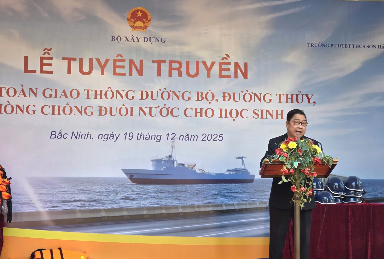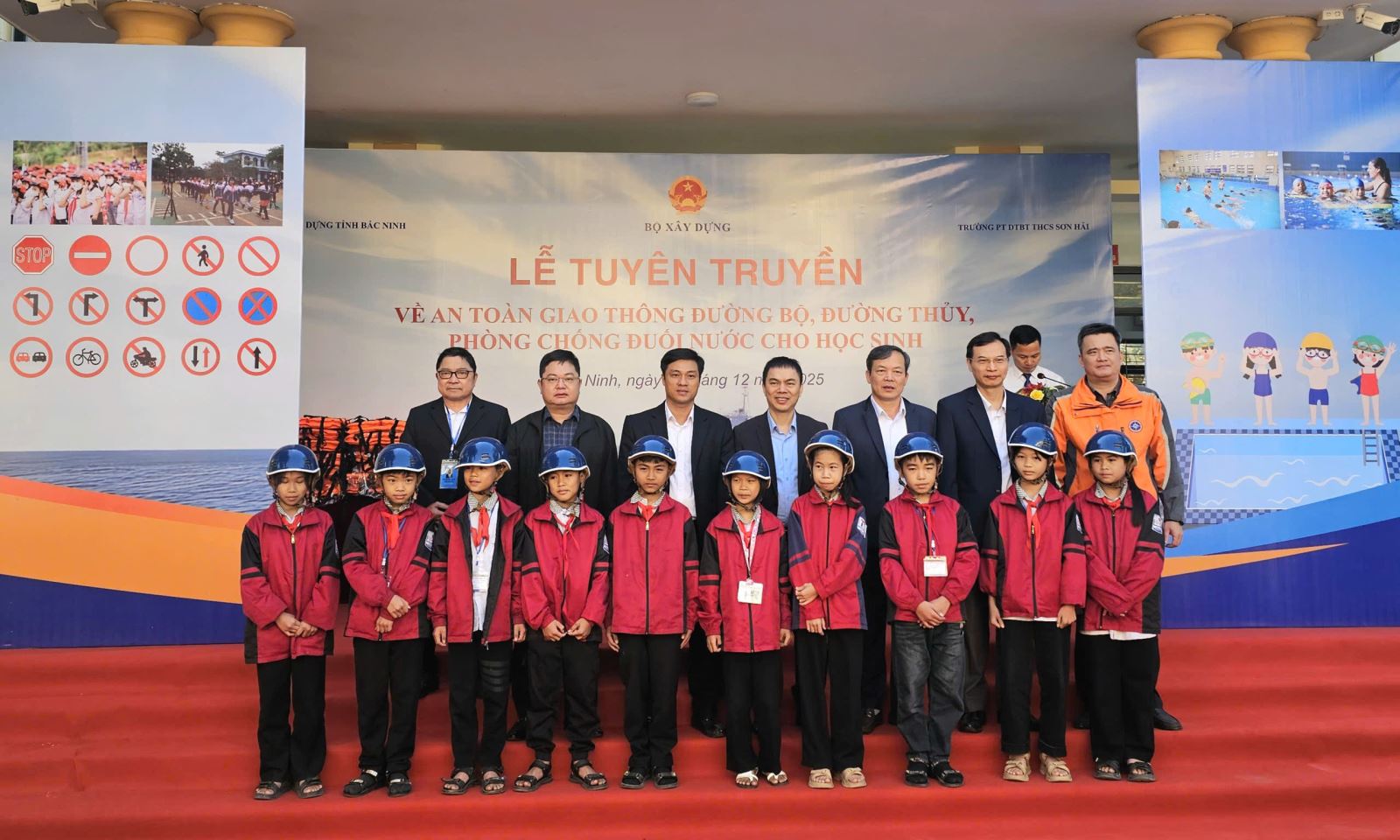 Thực hiện kế hoạch đảm bảo an toàn giao thông năm 2025, ngày 19/12, Bộ Xây dựng phối hợp cùng Sở Xây dựng tỉnh Bắc Ninh, UBND xã Sơn Hải, Trung tâm Phối hợp tìm kiếm cứu nạn hàng hải Việt Nam và trường Phổ thông dân tộc bán trú THCS Sơn Hải tổ chức Lễ tuyên truyền, phổ biến pháp luật vể an toàn giao thông đường bộ, đường thủy, phòng chống đuối nước khi tham gia giao thông cho học sinh tại tỉnh Bắc Ninh.