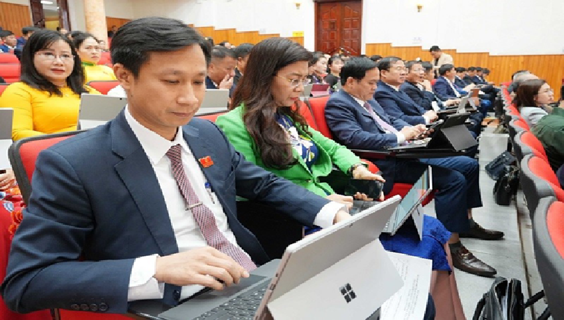 Đại biểu Hội đồng nhân dân tỉnh Điện Biên khóa XV ấn nút thông qua nghị quyết đầu tư dự án cao tốc Sơn La-Điện Biên-Cửa khẩu Tây Trang (giai đoạn 1).
