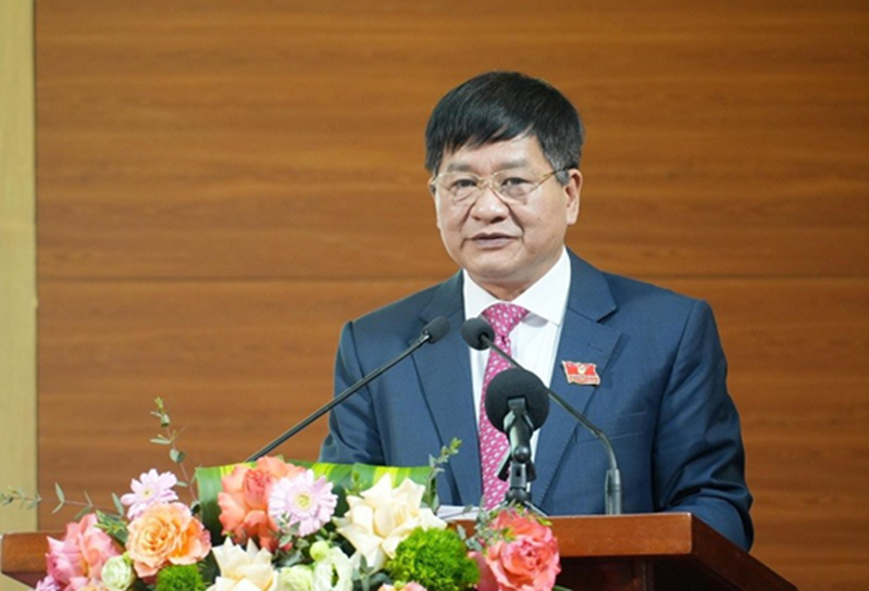 Đồng chí Lê Thành Đô, Chủ tịch Hội đồng nhân dân tỉnh Điện Biên phát biểu tại kỳ họp.