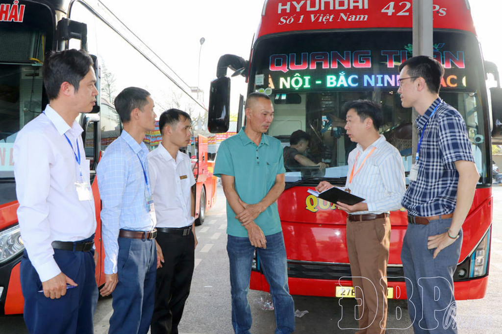 Cán bộ Sở Xây dựng Điện Biên tuyên truyền, động viên các đơn vị vận tải khách trước khi xuất bến.