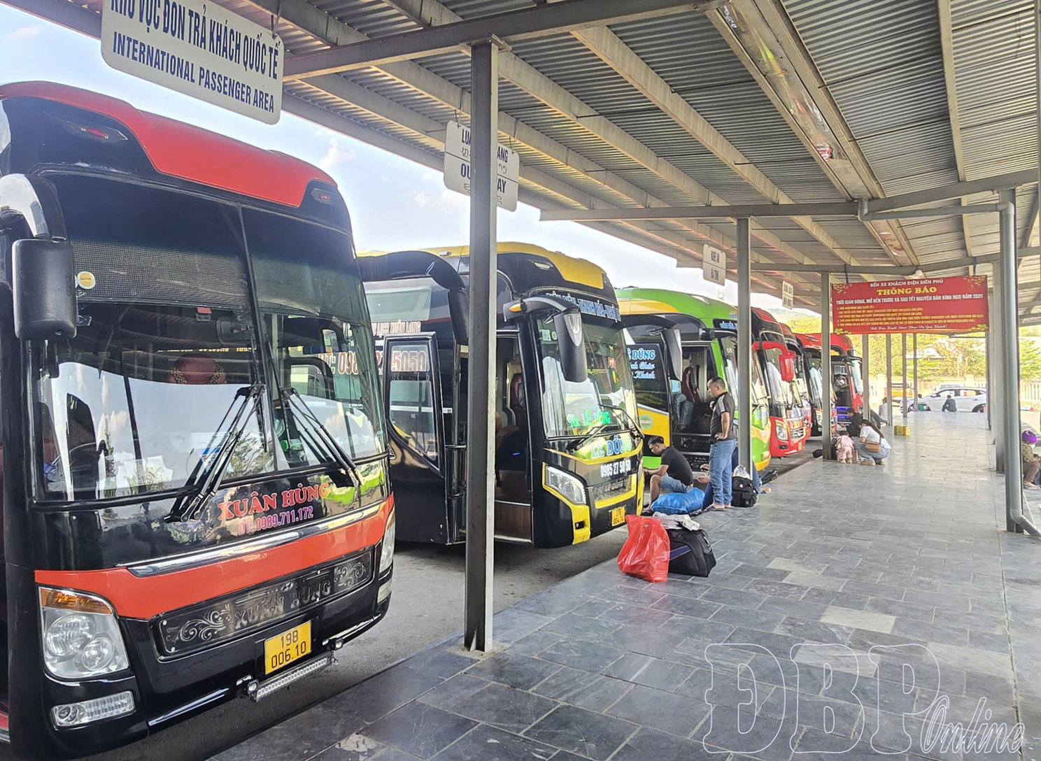 Xe khách tuyến cố định liên tỉnh đón khách tại Bến xe khách Điện Biên Phủ.