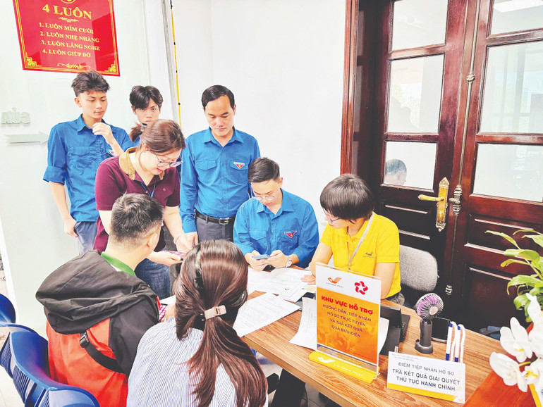 Đoàn viên phường Hòa Bình, tỉnh Phú Thọ hỗ trợ người dân thực hiện dịch vụ công trực tuyến.