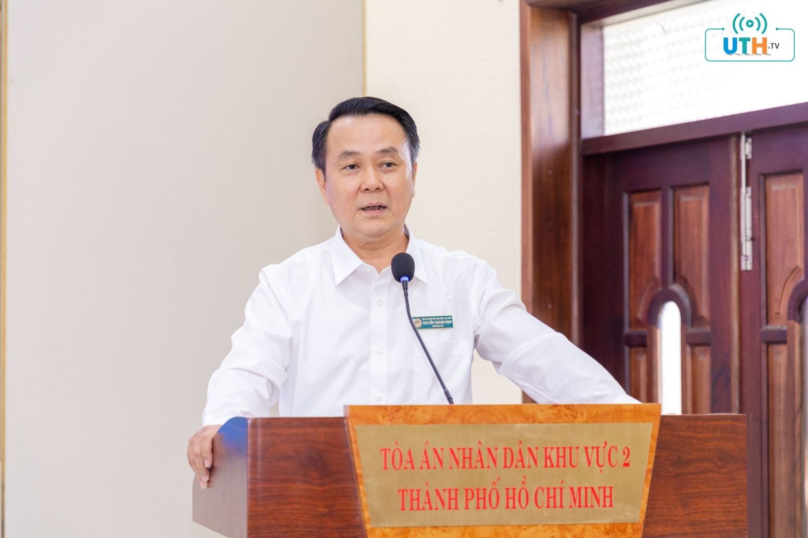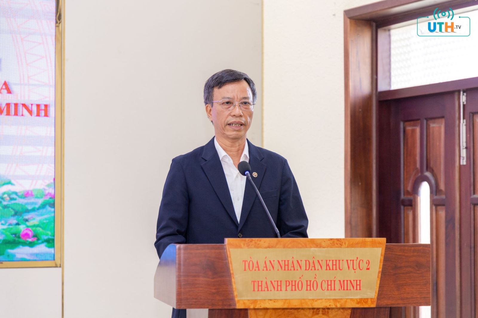 TS. Lê Văn Vang bày tỏ lời cảm ơn lãnh đạo và cán bộ TAND khu vực 2 TP HCM đã tạo điều kiện để sinh viên UTH được học tập, trải nghiệm và tham gia hỗ trợ các hoạt động chuyển đổi số trong lĩnh vực tư pháp.