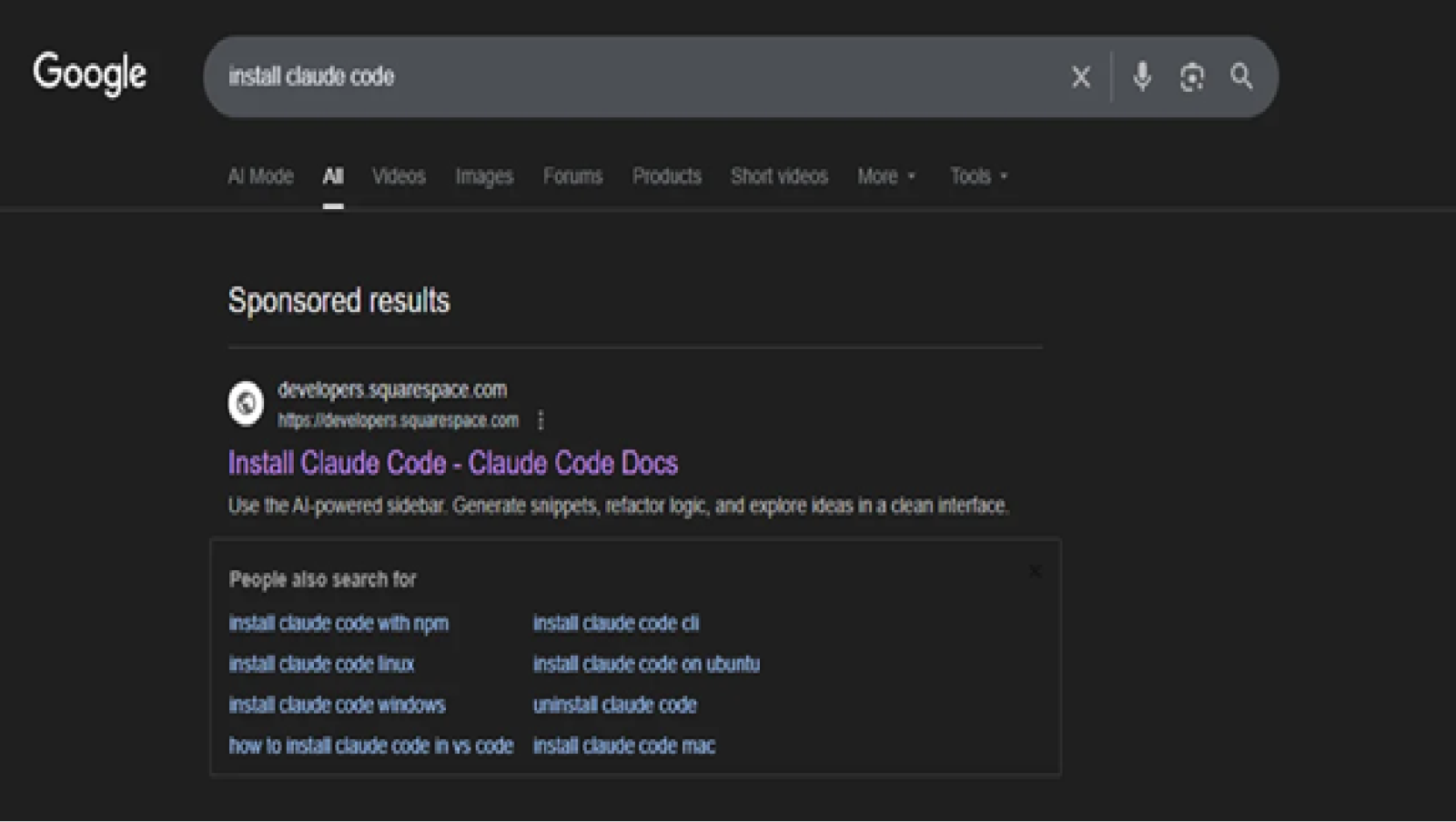 Các trang web giả mạo được phân phối chủ yếu thông qua quảng cáo độc hại trên công cụ tìm kiếm (malvertising). Kẻ tấn công mua quảng cáo trên Google Ads để hiển thị các liên kết độc hại ở vị trí đầu tiên trong kết quả tìm kiếm khi người dùng tìm kiếm các từ khóa như “Claude Code install” hoặc “Claude Code CLI”.