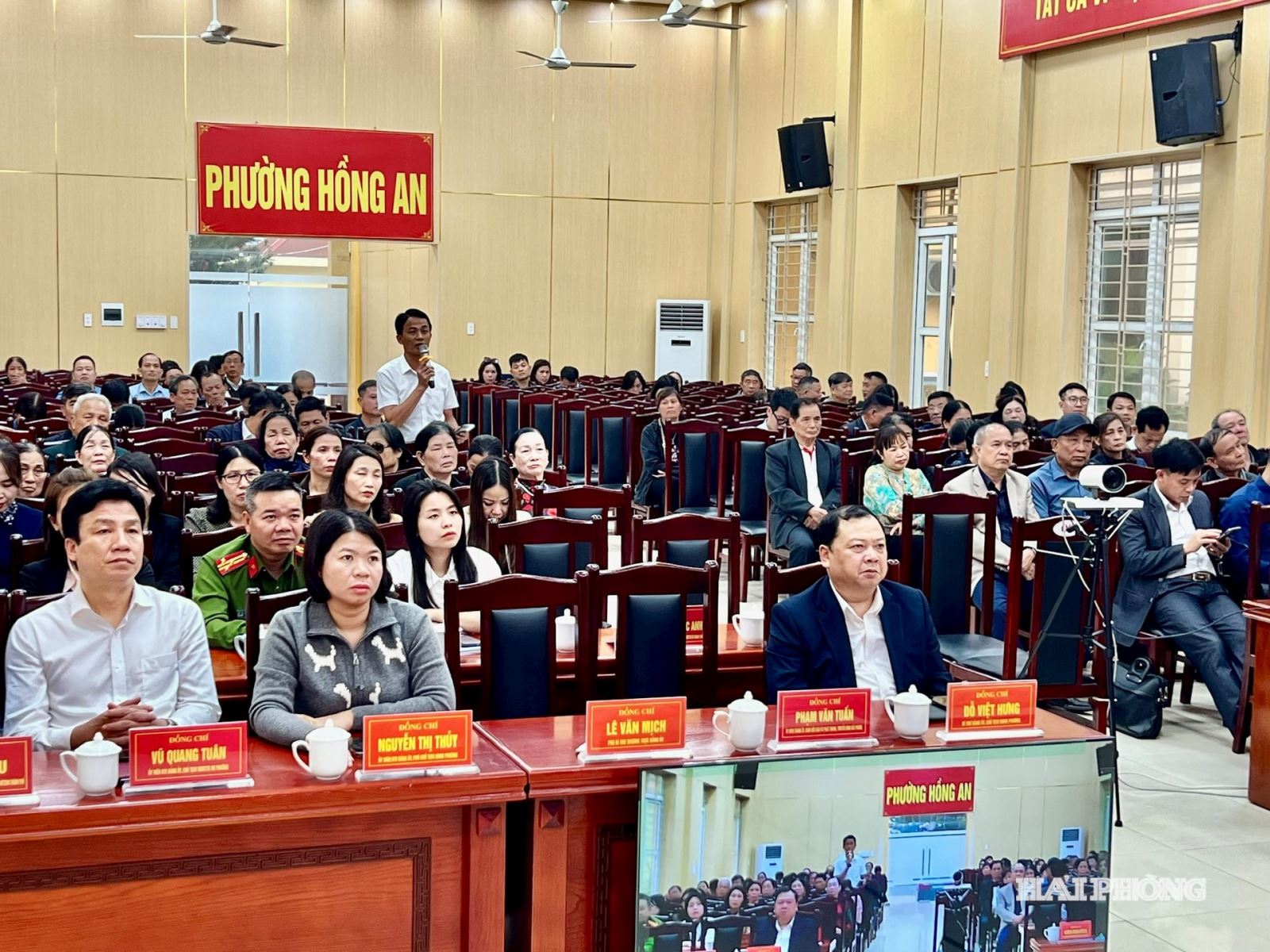 Cử tri phường Hồng An bày tỏ sự quan tâm tới phần trình bày của các ứng viên, đồng thời nêu lên những nguyện vọng, mong muốn của mình.