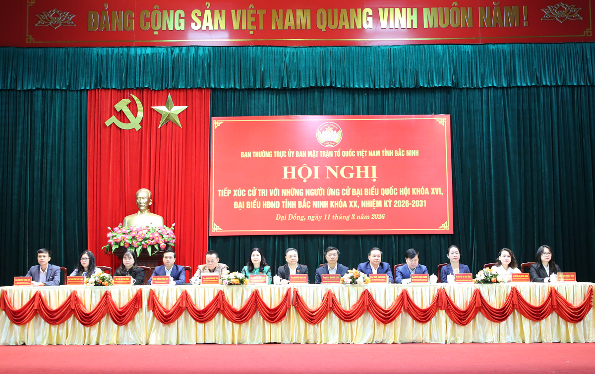 Sáng 11/3, tại xã Đại Đồng, Ban Thường trực Ủy ban MTTQ tỉnh Bắc Ninh tổ chức hội nghị tiếp xúc cử tri với những người ứng cử đại biểu Quốc hội (ĐBQH) khóa XVI và đại biểu HĐND tỉnh khóa XX, nhiệm kỳ 2026 - 2031.