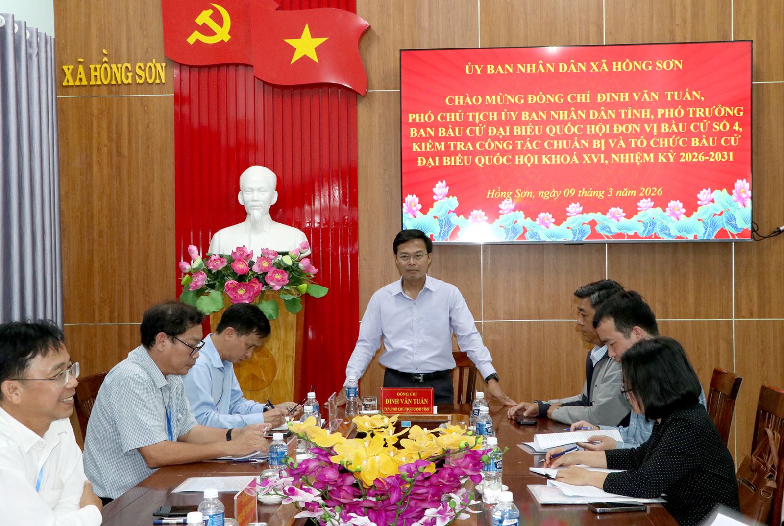 Phó Chủ tịch UBND tỉnh Đinh Văn Tuấn kiểm tra công tác chuẩn bị cho cuộc bầu cử tại xã Hồng Sơn