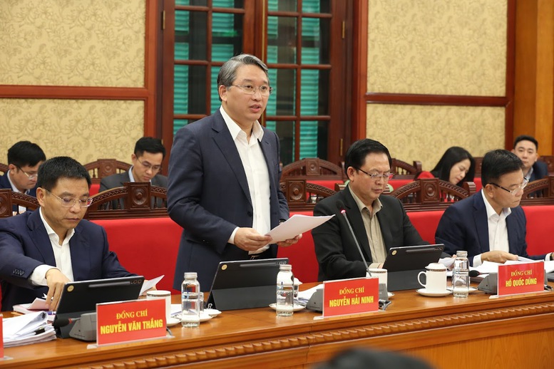 Bộ trưởng Bộ Tư pháp Nguyễn Hải Ninh báo cáo tại Phiên họp - Ảnh: VGP/Đỗ Cường