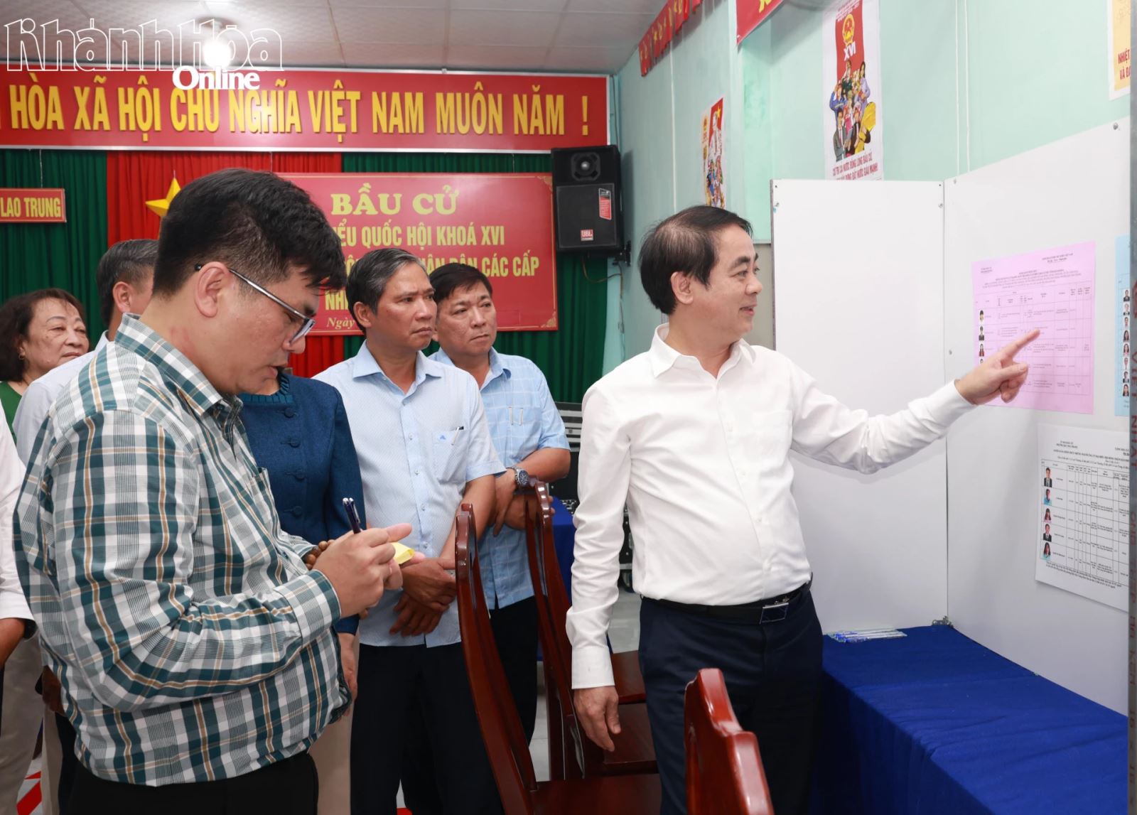 Bí thư Tỉnh ủy Nghiêm Xuân Thành kiểm tra việc niêm yết danh sách tại các điểm cử tri ngồi ghi phiếu bầu cử