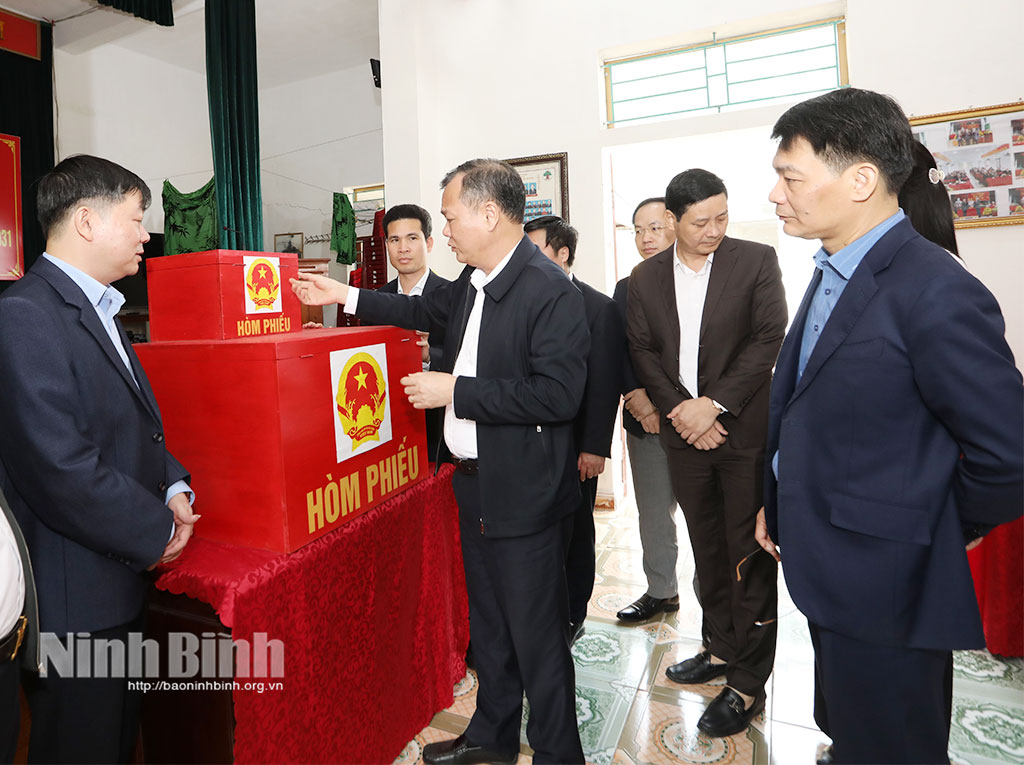 Phó Bí thư Tỉnh ủy, Chủ tịch HĐND tỉnh Ninh Bình kiểm tra công tác bầu cử tại một số địa phương