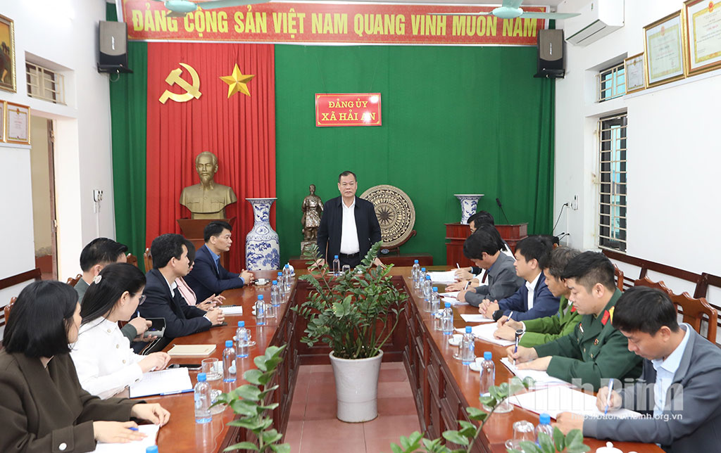Đồng chí Phó Bí thư Tỉnh ủy, Chủ tịch HĐND tỉnh Lê Quốc Chỉnh và Đoàn công tác kiểm tra công tác chuẩn bị bầu cử tại xã Hải An.