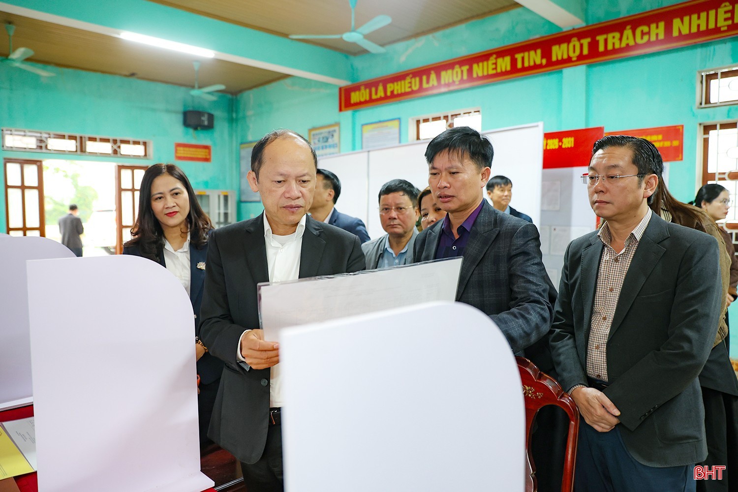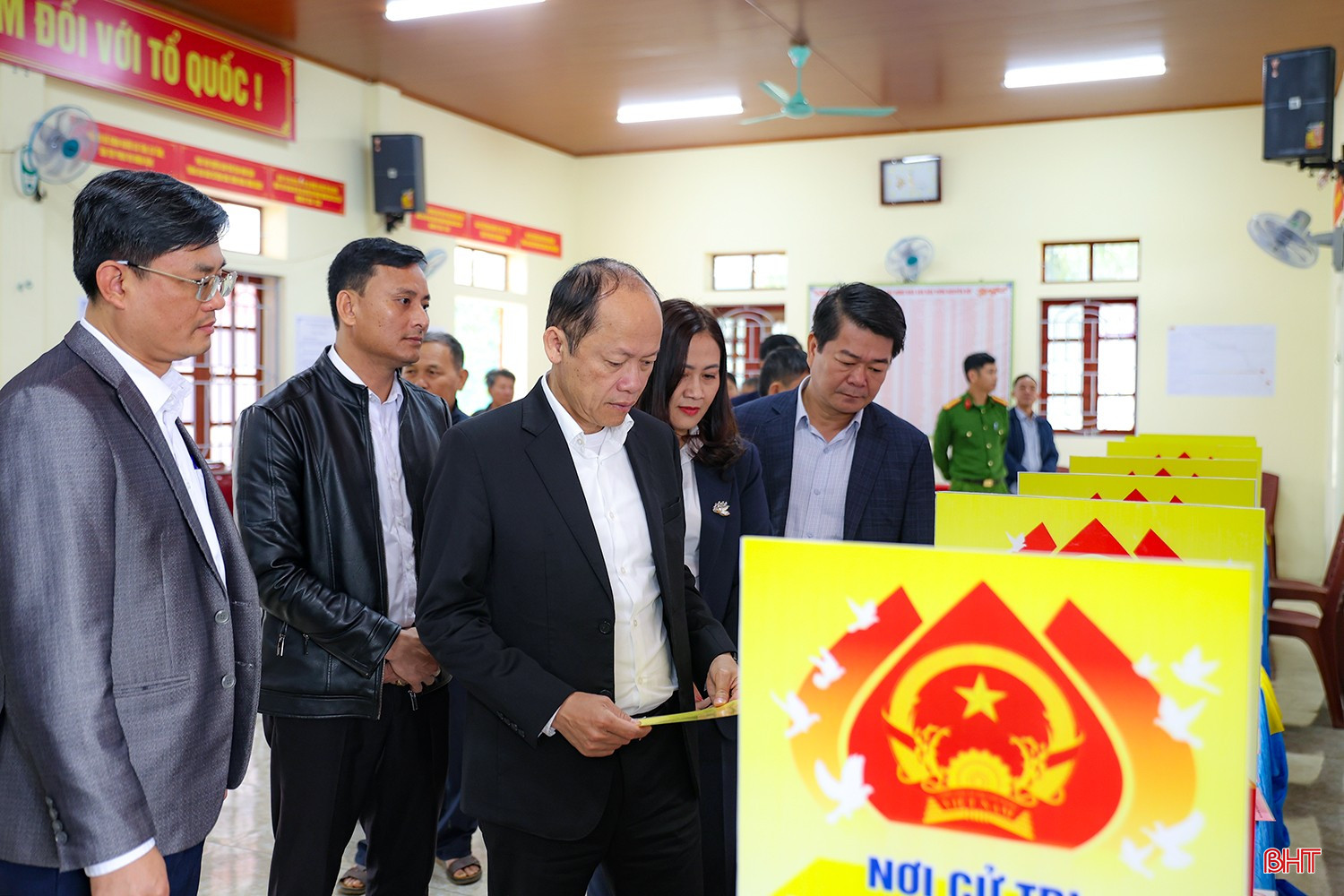 Đồng chí Nguyễn Hồng Lĩnh kiểm tra khu vực bỏ phiếu số 6 (thôn 9 - thôn 12), xã Cẩm Xuyên