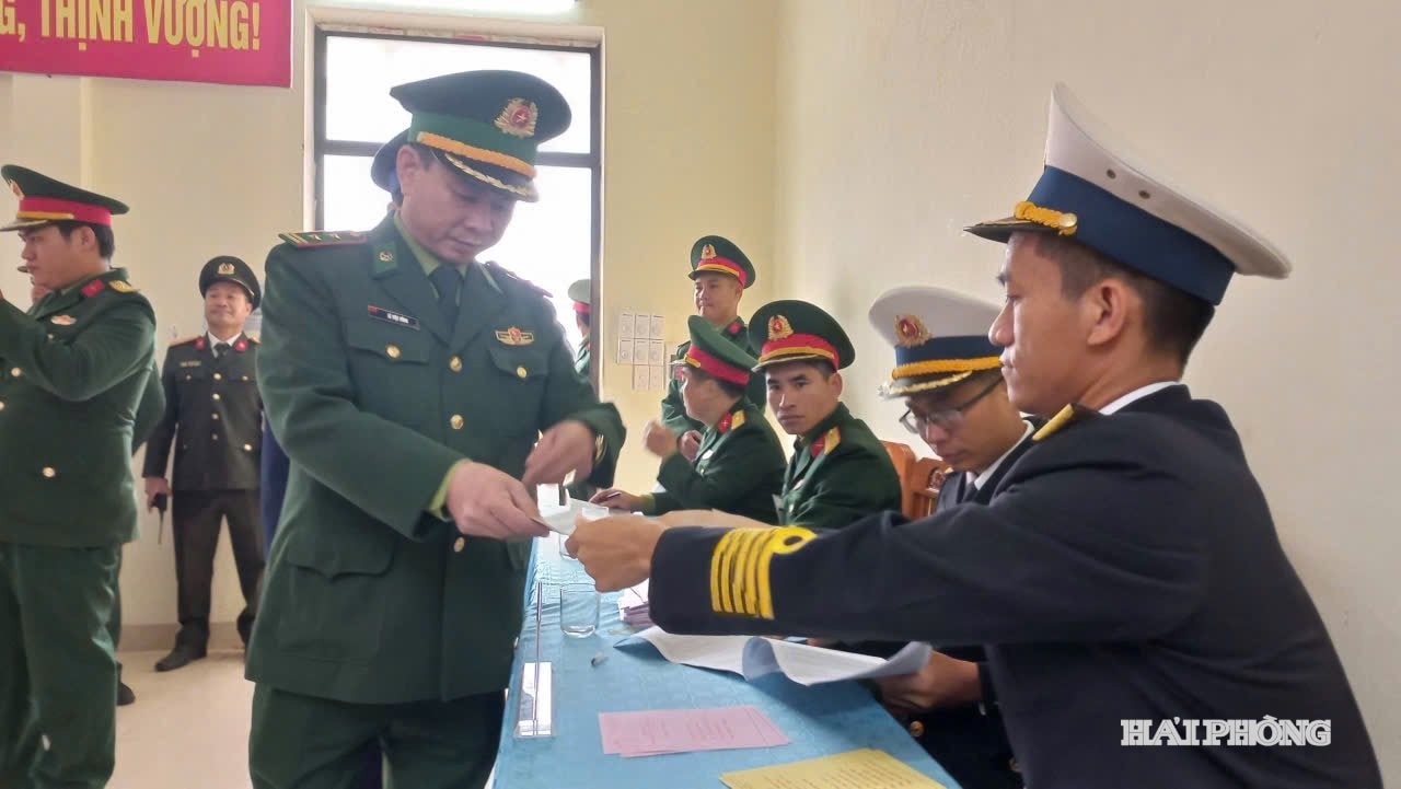 Cán bộ, chiến sĩ công tác trên đảo Bạch Long Vĩ thực hiện quyền bầu cử.