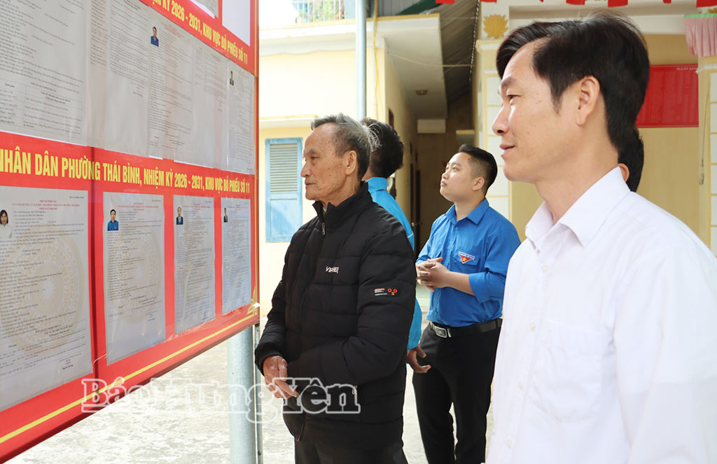Cử tri phường Thái Bình tìm hiểu tiểu sử người ứng cử tại nhà văn hóa tổ 17.