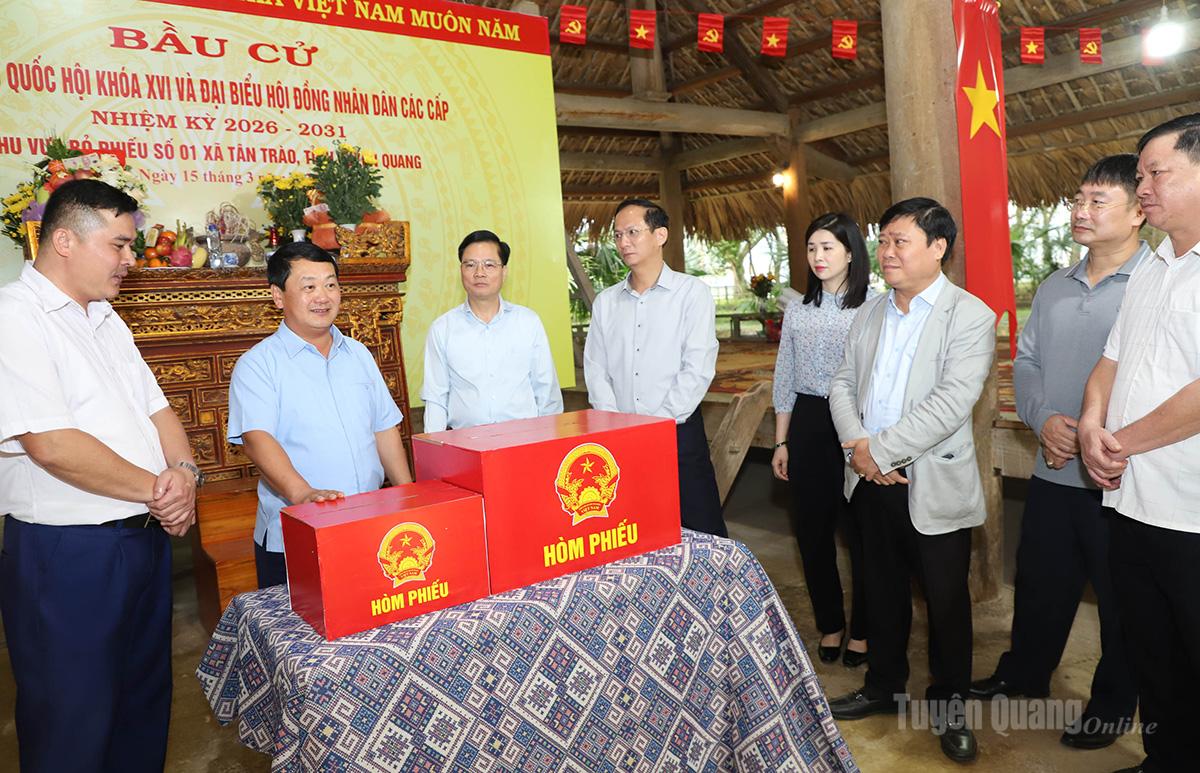 Chiều 14/3, đồng chí Hầu A Lềnh, Ủy viên Ban Chấp hành Trung ương Đảng, Bí thư Tỉnh ủy, Trưởng Ban Chỉ đạo Bầu cử tỉnh Tuyên Quang đã kiểm tra công tác chuẩn bị cho cuộc bầu cử đại biểu Quốc hội khóa XVI và đại biểu HĐND các cấp nhiệm kỳ 2026-2031 khu vực bầu cử số 01, xã Tân Trào. Cùng đi có các đồng chí: Trần Quang Minh, Ủy viên Ban Thường vụ Tỉnh ủy, Trưởng ban Tổ chức Tỉnh ủy, Ủy viên Ban Chỉ đạo Bầu cử tỉnh; lãnh đạo Báo và phát thanh, truyền hình tỉnh.