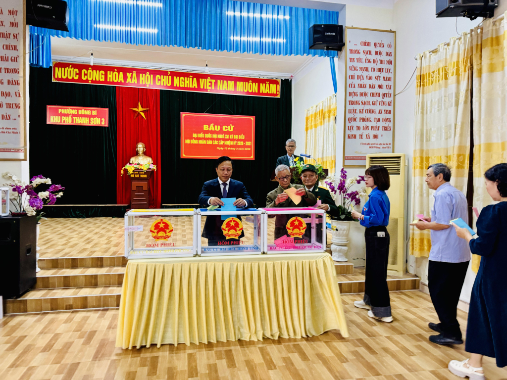 Cử tri phường Uông Bí thực hiện quyền bầu cử.