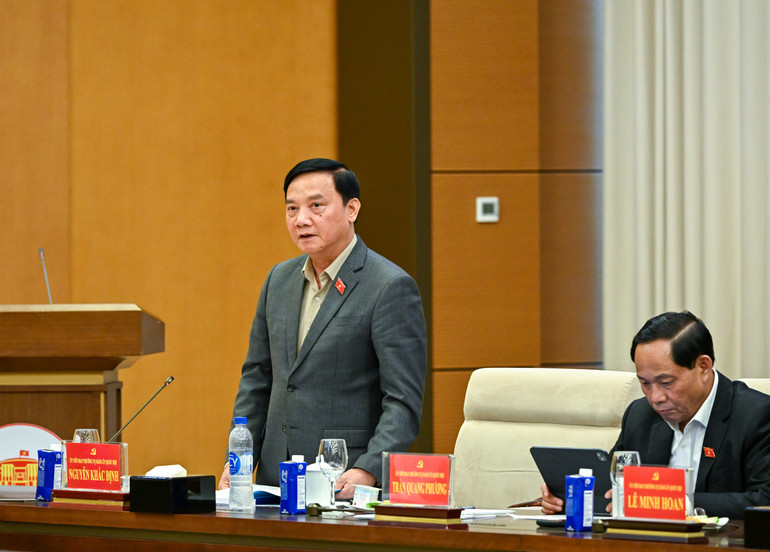 Phó Chủ tịch Quốc hội Nguyễn Khắc Định phát biểu tại hội nghị. (Ảnh: DUY LINH)