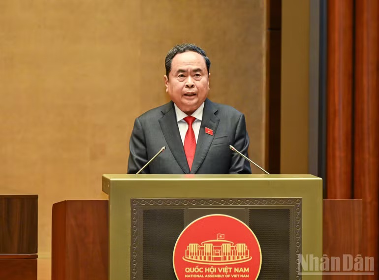 Chủ tịch Quốc hội khóa XVI Trần Thanh Mẫn phát biểu nhậm chức. Ảnh: DUY LINH