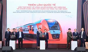 The opening ceremony of the International Exhibition and Conference on Modern Railway Technology and Infrastructure Construction Supply Chain in Vietnam (VRT&CONS 2025) took place at the Vietnam Exhibition Center on November 12th. Deputy Minister Nguyen Danh Huy, Ambassador Extraordinary and Plenipotentiary of the Federal Republic of Germany to Vietnam Helga Margarete Barth, Director of the Vietnam Railway Authority Tran Thien Canh, representatives of state management agencies, project management boards, production - construction enterprises, EPC contractors, financial institutions, universities, research institutes and international partners in the field of railways and modern infrastructure construction attended the ceremony.