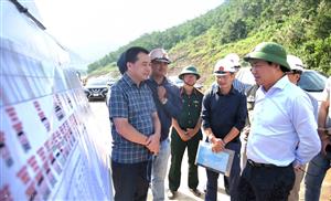 On the afternoon of November 14th, Deputy Minister of Construction Nguyen Tuong Van inspected the landslide situation on the La Son - Hoa Lien expressway (connecting Hue city with Da Nang city).